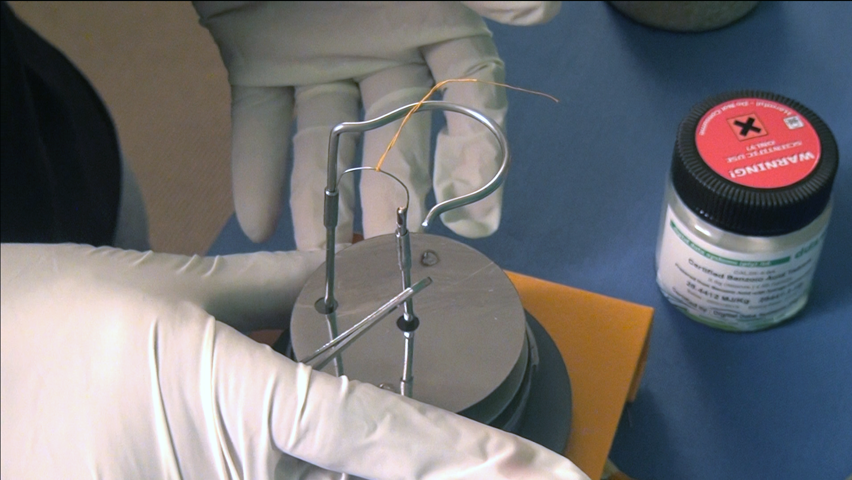 In this tutorial, we will show you the correct way to attach the firing cotton to the firing wire when preparing a sample for firing in any of our CAL3K Oxygen Bomb Calorimeter Systems. The exercise is fairly simple and can be completed with or without the stainless steel tweezers. We prefer to use the tweezers as it doesn't affect the firing cotton and sample and is easier to handle the firing cotton with.